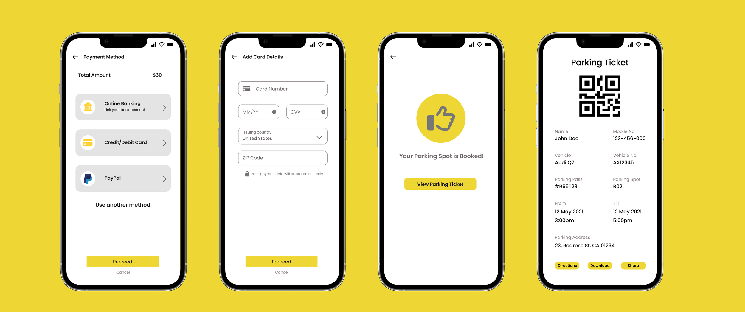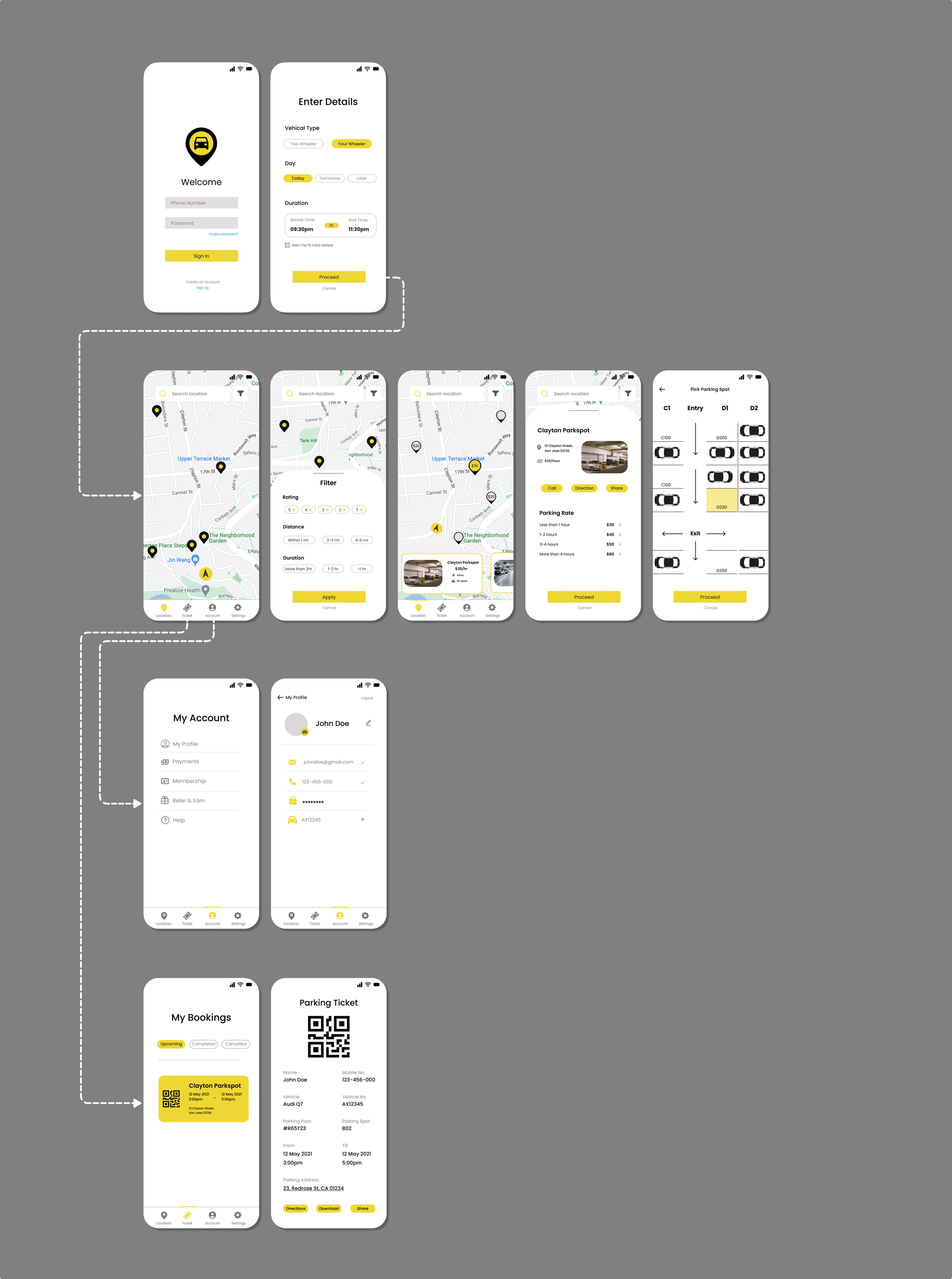 Design Brief: To design a mobile app allowing users to navigate parking spots easily and book the space in advance.